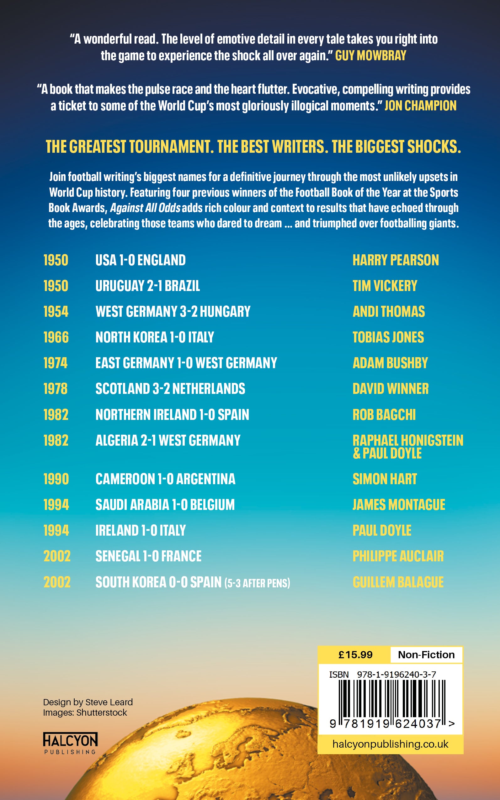 Against All Odds adds rich colour and context to results that have echoed through the ages, celebrating those teams who dared to dream, and triumphed over footballing giants. It shines a light on the inherent relationship between football and socio-political climates, making it not only a comprehensive history but a must-have companion to the 2022 World Cup.